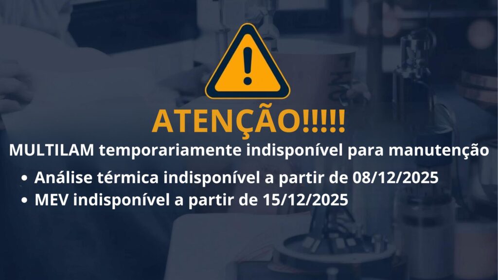 Informamos que o MULTILAM estará temporariamente indisponível devido à realização de manutenções no laboratório.